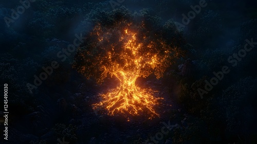 Fiery explosion in dark sky, bright orange flames with smoke billowing, enhances dramatic effects for action scenes.
