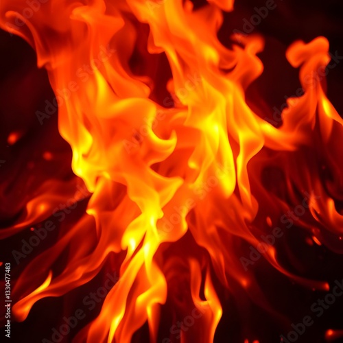 Fiery Flame Abstract Art, Burning Fire, Orange and Red Flames, Close-up, Dynamic Energy, Heat, Inferno, Blaze, Ember, Powerful Visual.