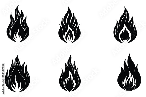 Fiery Flame Icons A Collection of Six Unique Black and White Fire Designs