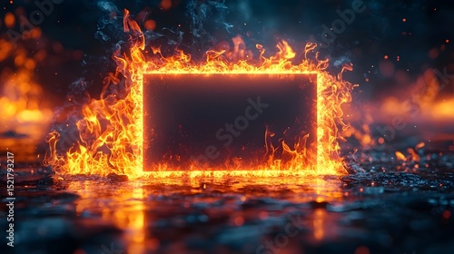 Fiery Frame A Burning Card Reflects on the Rippling Surface