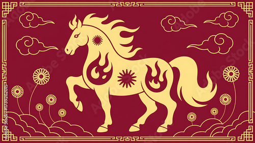 Fiery golden horse symbolizing prosperity and good fortune during chinese new year celebrations