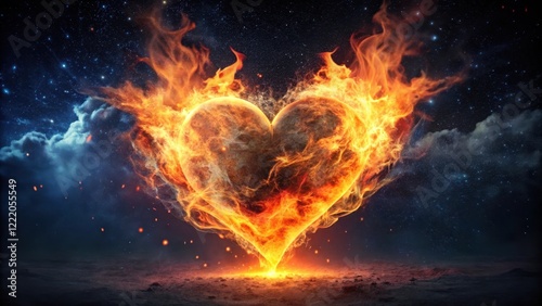 Fiery Heart Burning Bright Against a Starry Night Sky