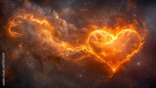 Fiery heart-shaped nebula glowing in the cosmic night sky. Stunning astrophotography capturing the beauty of the universe.