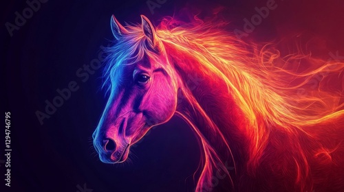 Fiery Horse Portrait in Vivid Pink Blue and Red Hues