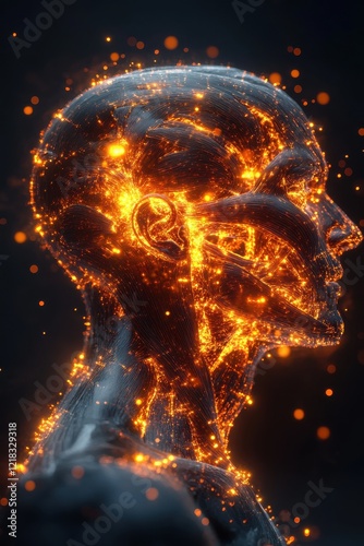Fiery Human Head Energy Flow Anatomy Visualization