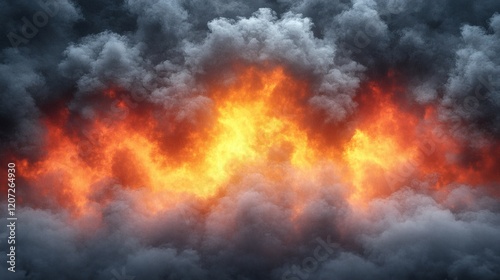 Fiery Inferno Surrounded By Thick Gray Smoke Clouds