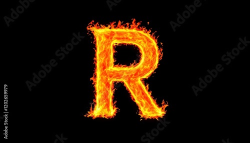 Fiery Letter R: A Dramatic, Blazing Alphabet Design