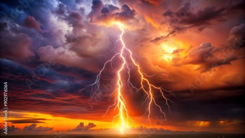 Fiery Lightning Bolt Against a Stormy Sky generative AI