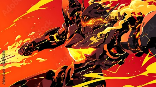 Fiery Mech Warrior: A Crimson Inferno of Power