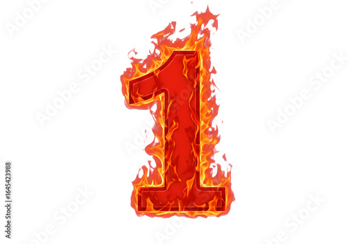 Fiery Number One: Burning Digit Graphic isolated on transparent background