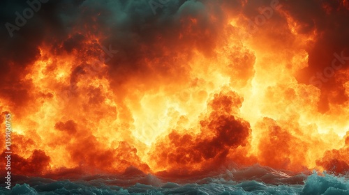 Fiery orange flames dramatically engulf dark smoke a chaotic inferno. AI Generated