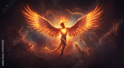 Fiery Phoenix Digital Painting: Celestial Rebirth in a Cosmic Nebula AI Generated