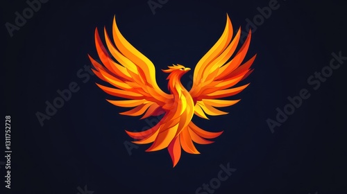 Fiery Phoenix Emblem, Graphic Design, Digital Art, Use for Logo, Print