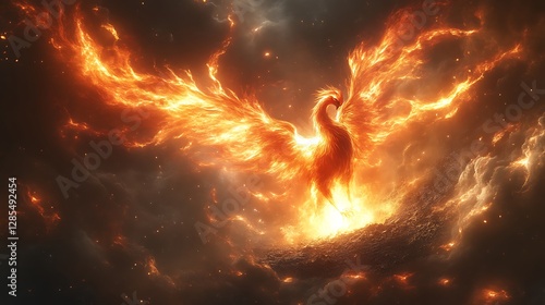 Fiery Phoenix Rising From Ashes In Cosmic Setting