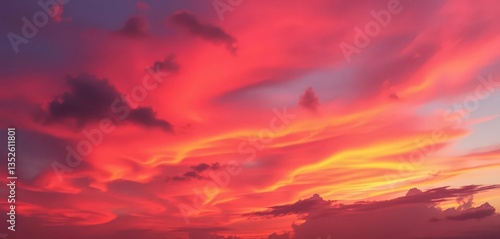 Fiery pink and orange sunset hues paint the dramatic sky, horizon, colorful sunset