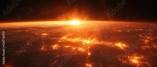Fiery Planet: A sunrise over a world ablaze with orange and red hues