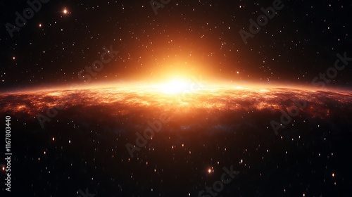 Fiery Planet Sunrise: A Cosmic Landscape of Golden Hues