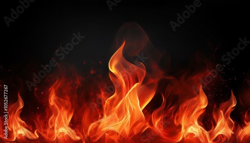 Fiery realistic flames on a dark background creating an abstract texture