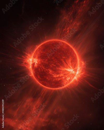 Fiery Red Giant Star Emitting Solar Flares in Deep Space Digital Illustration Celestial Phenomenon