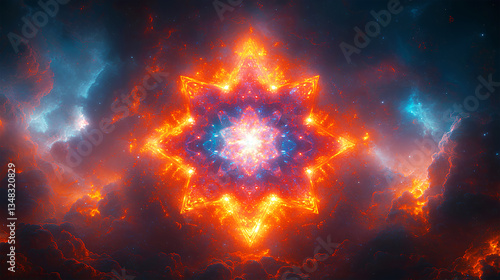 Fiery Star-Shaped Nebula in a Cosmic Landscape
