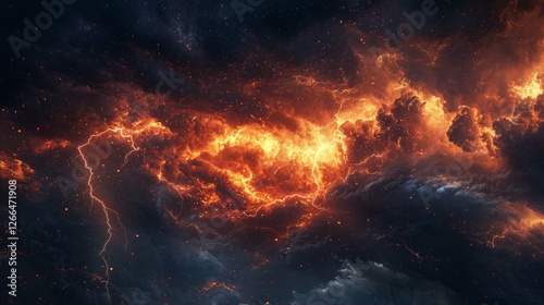 Fiery Stormy Sky with Lightning and Dramatic Clouds at Dusk