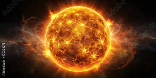 Fiery Sun with Solar Flares and Glowing Plasma in Space