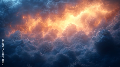 Fiery sunset cloudscape above stormy ocean, dramatic background, design element