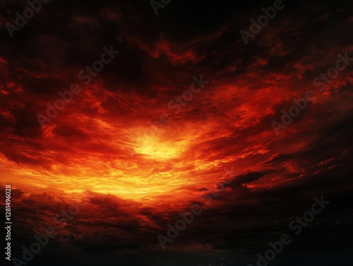 Fiery sunset painting the sky with vibrant orange and red hues creating a dramatic and intense atmosphere above the horizon