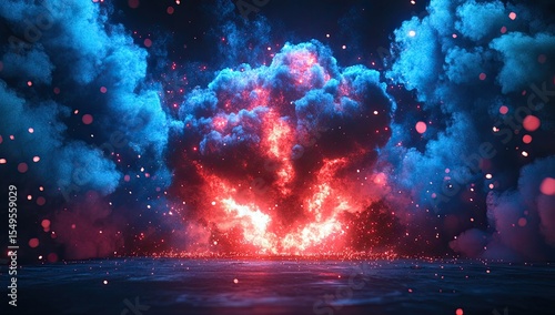 Fiery, vibrant cloud explosion