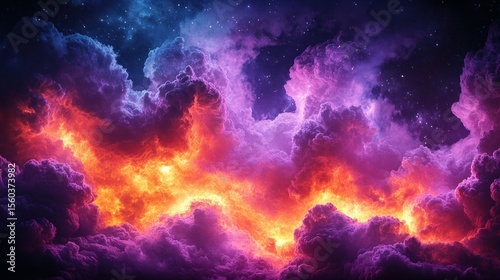 Fiery, vibrant clouds against a starry night sky