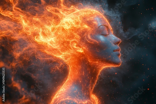 Fiery Woman Portrait Embracing the Power of Flames