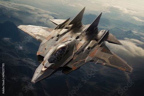 Fighter aircraft fighting, Jet fighter flying above the clouds Ai generated