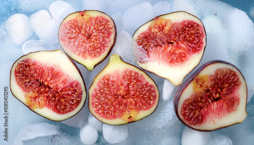 Figs fruit slices on frozen surface