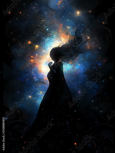 Figure in Starry Sky,Ethereal Beauty,Dark Fantasy