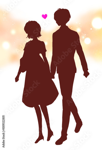 手を繋いでデートする男女 影絵
