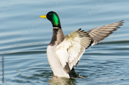 開翼するマガモ