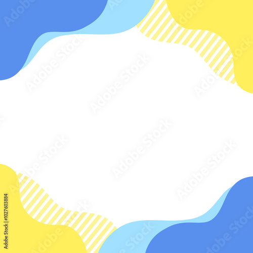 正方形の背景 波状の枠 ストライプの模様 青と黄色