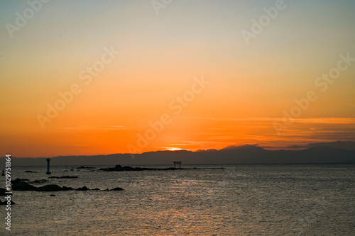 神奈川県葉山町森戸海岸からの夕日