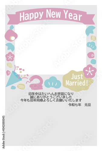 北欧風デザインの干支の巳の結婚報告フォトフレーム年賀状テンプレート素材