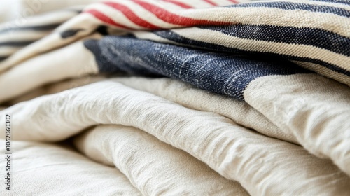 テクスチャーのあるストライプと柔らかいニュートラルトーンの折り畳み生地