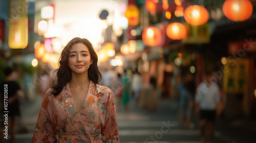 活気ある通りと文化的な雰囲気が特徴の活気ある日本の都市の賑やかなナイトライフ