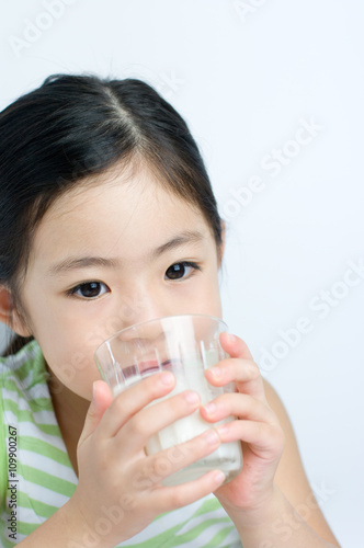 ミルクを飲む日本人の女の子