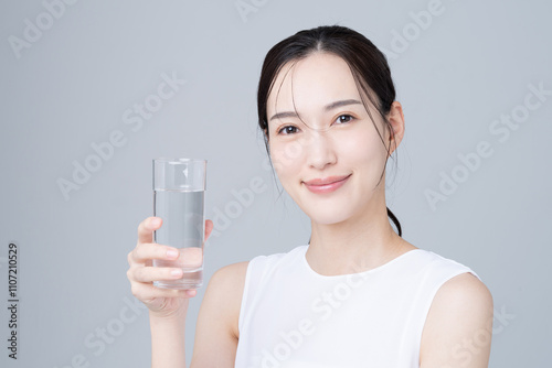 ミネラルウォーターを飲む若い女性