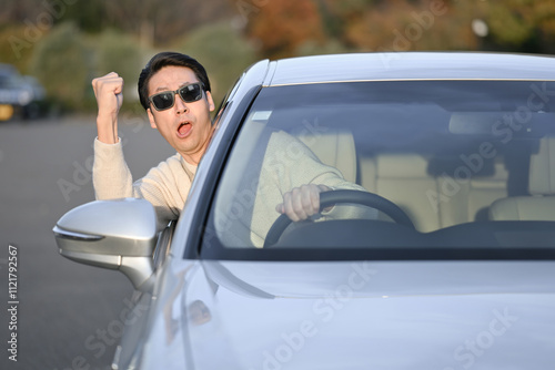 車を運転しながら怒る男性