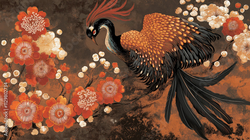 煌びやかな和柄と鳥のアート|背景,日本,アジア,伝統美,豪華な壁紙