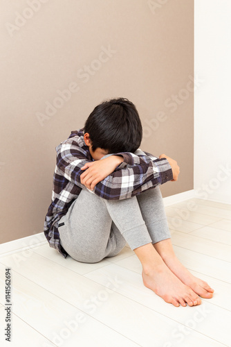 部屋で落ち込む男の子