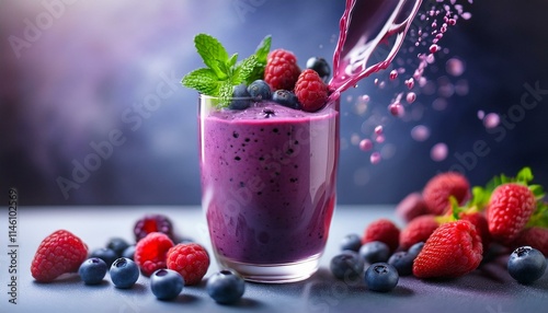 鮮やかな紫色のアサイーとベリーのスムージー