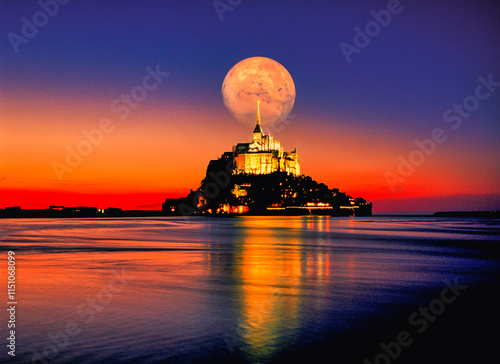モンサンミッシェル僧院上空の満月