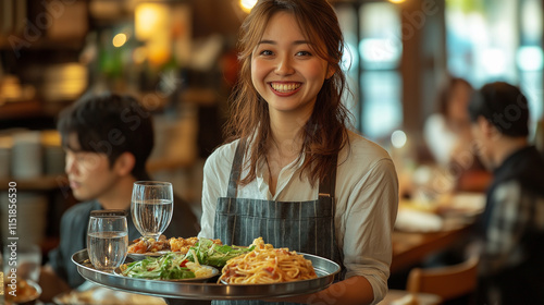 ファミレスで働く女性