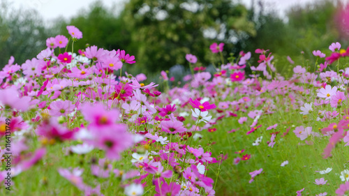 ピンクと白が織りなすコスモス畑